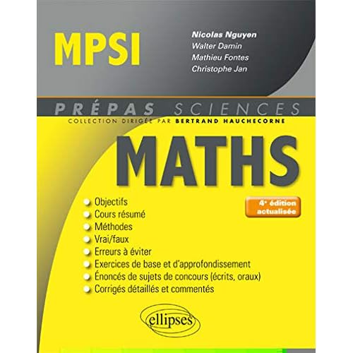 Les ouvrages de la collection Prépas Sciences sont le complément indispensable à la réussite en CPGE scientifiques. Ils ont été conçus et rédigés par des professeurs enseignant en CPGE scientifiques dans différents lycées de notre pays. Leur contenu a été discuté et pensé avec soin pour permettre la meilleure adéquation avec les attentes et les besoins des étudiants en classes préparatoires scientifiques. Pour intégrer, il faut assimiler le cours, en connaître les points fondamentaux et savoir le mettre en application dans des exercices ou des problèmes souvent ardus. Cette collection est conçue pour répondre à ces difficultés. Dans chaque chapitre, correspondant à peu près à une semaine de cours, le lecteur trouvera : - Le résumé de cours Il vous permettra d’accéder à une connaissance synthétique des notions. - Les méthodes Elles vous initieront aux techniques usuelles qu’il faut savoir mettre en place. - Le vrai/faux Il testera votre compréhension du cours et vous évitera de tomber dans les erreurs classiques. - Les exercices, avec des indications Souvent tirés d’annales de concours, ils vous entraîneront aux écrits comme aux oraux. - Les corrigés Toujours rédigés avec soin, ils vous aideront à progresser dans la résolution d’exercices. Ainsi, avec un seul livre par année et par matière, la collection Prépas Sciences vous permettra de surmonter les colles, d’affronter les devoirs, et elle vous guidera, jour après jour, dans votre cheminement vers la réussite aux concours.